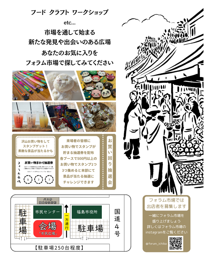 04日 9月 2025 イベント情報 9月6日㈯ フォラム市場 9月6日(土)は福島市の市民センター前広場で行われる「フォラム市場」で似顔絵を描かせていただきます。 ぜひお越しください♬ tagPlaceholderカテゴリ: